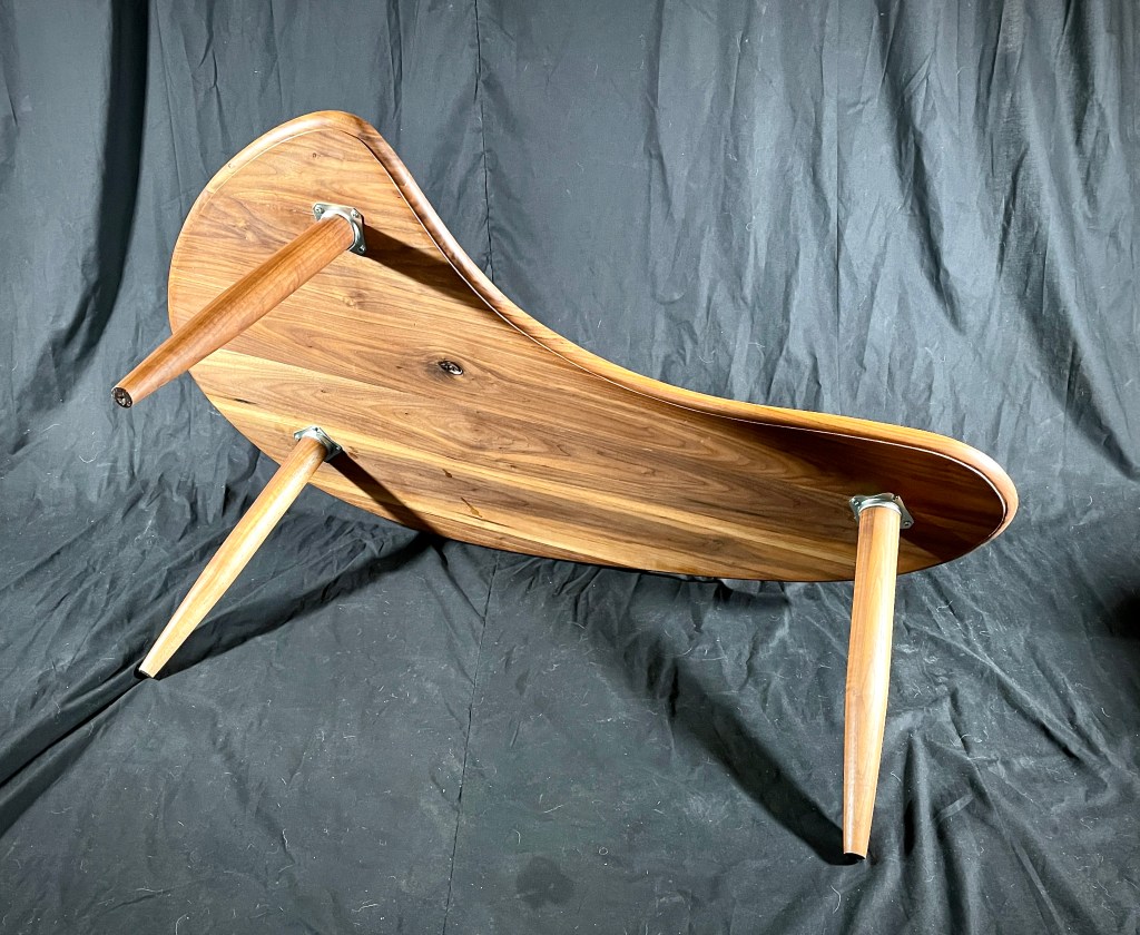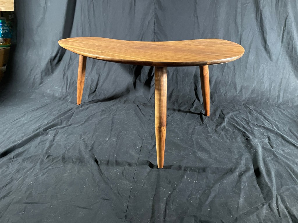 After looking around for a coffee table that fit a space in our home, I realized that it would be better to just make one. So, with my daughter’s assistance, we designed and produced this walnut coffee table. The wood that we used in this project was up-cycled, found wood. I hand turned the legs on this table which was my first time experimenting with wood turning in my current woodworking practice.