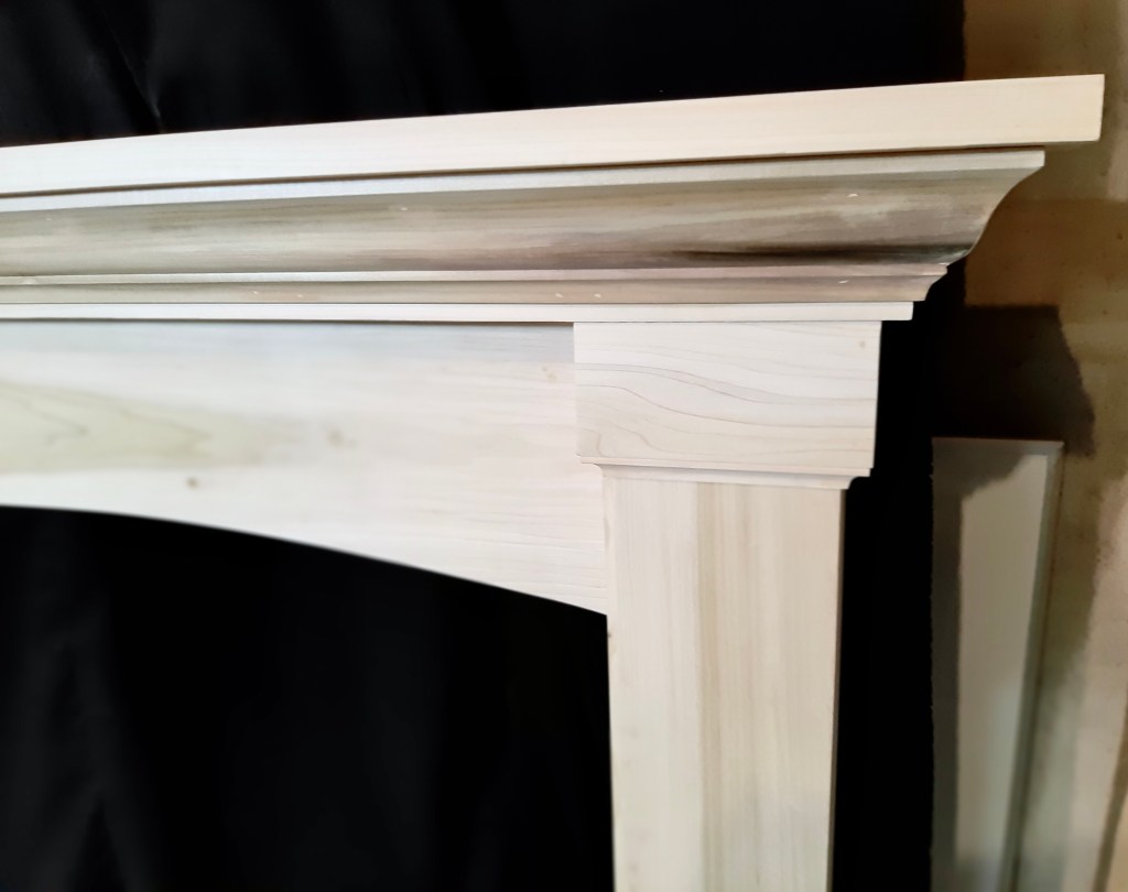 A client showed me a picture and explained she wanted to cover much of the tile that surrounded her fireplace. This is the result. Made from poplar and painted to match her trim work this fireplace surround changed the entire look of her living room.