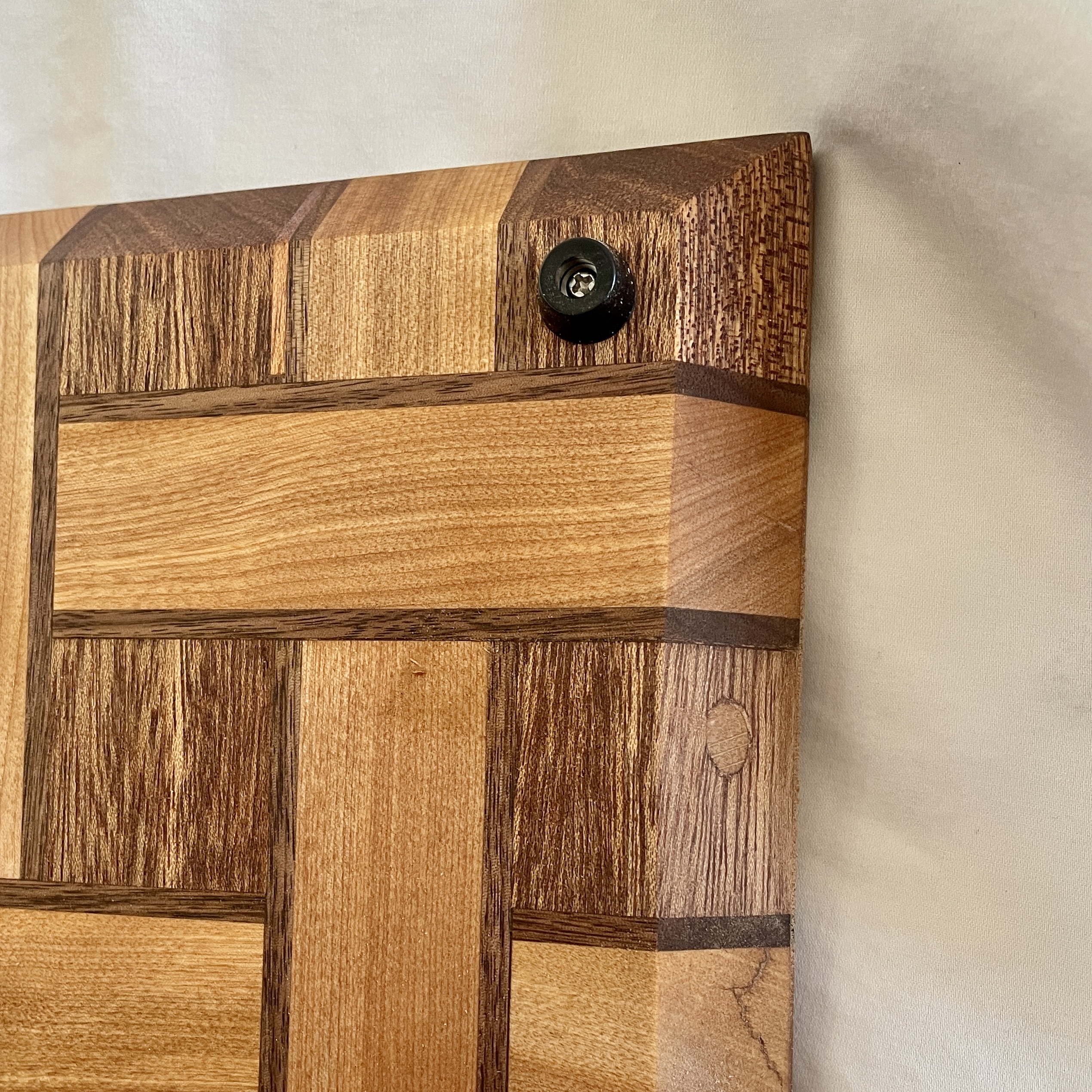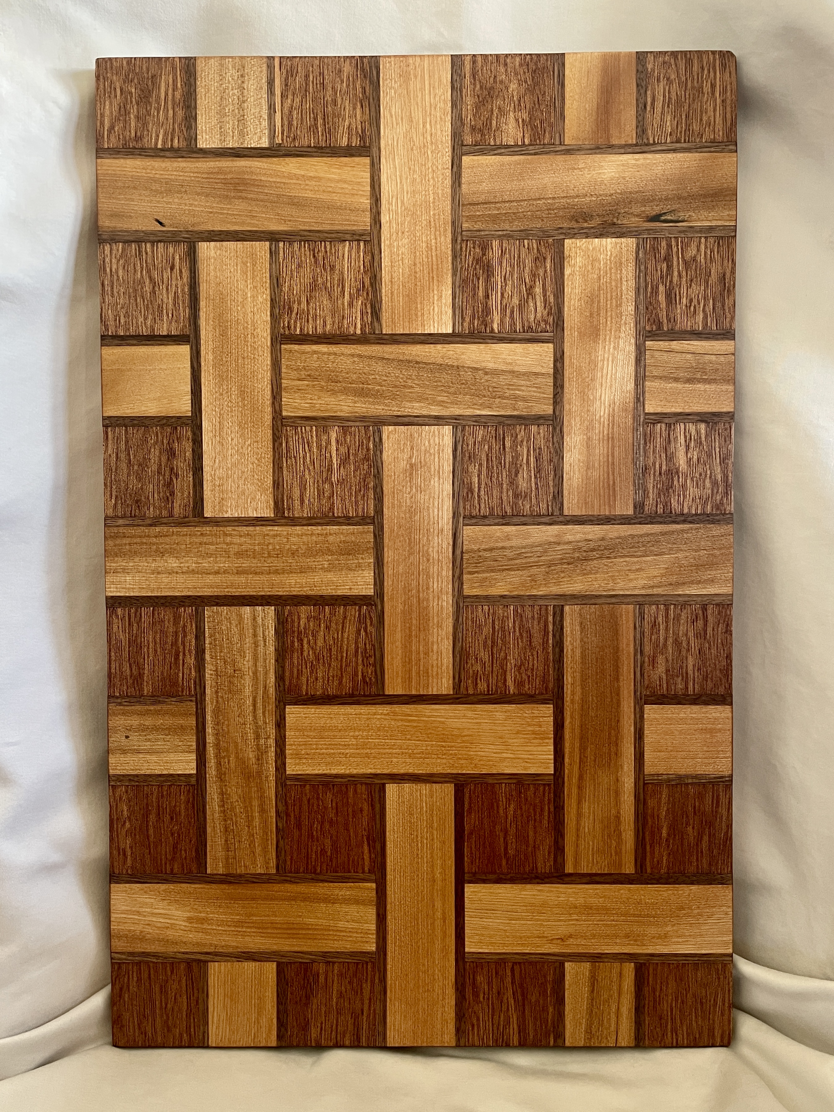 I love gifting people things they don’t have and I am a strong believer in a good cutting board. Cutting boards also are forms that invite a creative surface design and I have really enjoyed playing around with different patterns, woods, and styles with these objects. I get even more out of it knowing that people are getting so much use and joy out of an everyday object. My mother and law was a recipient of one of these cutting boards and has been using it for years. They recently had a crack in it so I took it back to my shop to repair it and she had it back in her kitchen the next day. I am truly committed to making lasting, heirloom quality pieces and am always happy to fix or make adjustments to any of my projects. They are always made with food safe wood and finished with a citrus oil that is hearty enough to withstand daily use. I’ve also made a special wood conditioner to be applied after washes that is made with wax from my own bee hives.