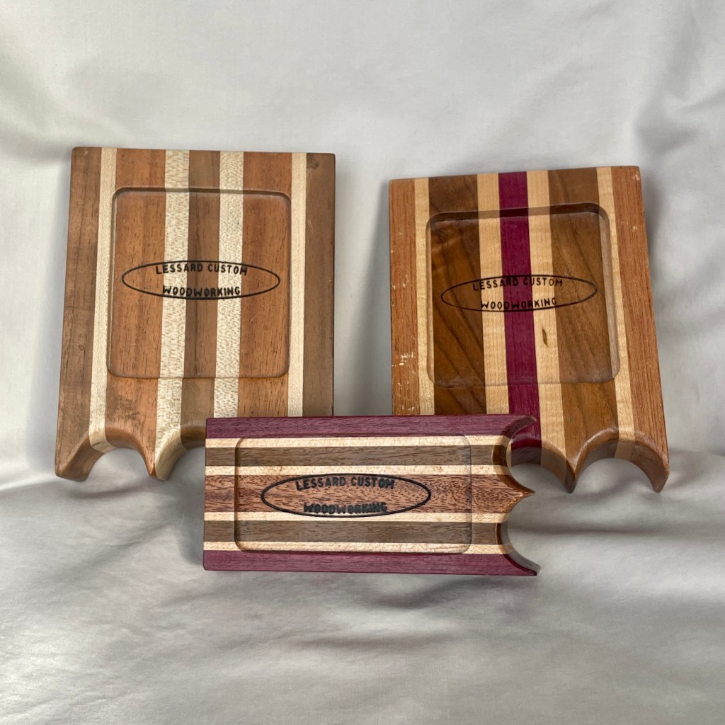 In my retirement I have rekindled my love for billiards. It was something I spent a lot of time playing around with in my youth and I also have a lot of fond memories of getting beaten in a game of pool by my father-in-law. During my games I noticed there wasn’t a good place to rest my pool ques and my other tools so I whipped out some of these que holders using wood scraps from my previous projects. I’ve given some of these out to my buddies at the pool hall I go to and they seem to be a big hit! They are finished with a rubber bottom so they rest securly on the edge of any table.