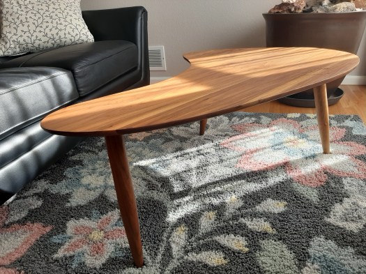This is a walnut table with simple hand-turned legs. After my wife and I replaced some furniture in our front room I looked for a table that I felt would be functional as well as decorative and unique. It did not take long before I realized the best option would be to build the table myself. I appreciate the figure (contrast in grain color and shape) of wood and this project allowed me to celebrate the figure in the walnut I chose.